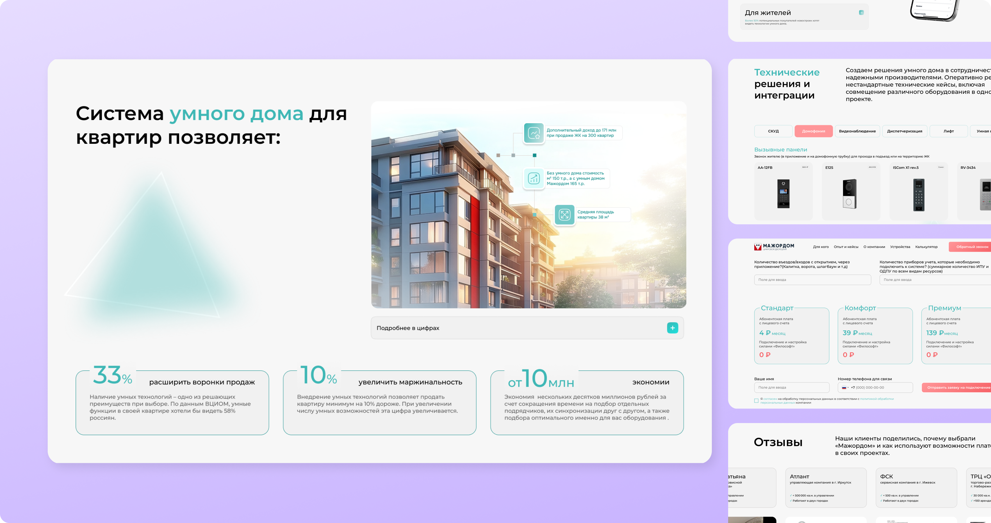 Создать многофункциональный цифровой хаб, который эффективно работает на все целевые аудитории B2B-сегмента: демонстрирует выгоды партнерства для застройщиков и УК, предоставляет исчерпывающую информацию жителям и упрощает процесс коммерческого предложения за счет автоматизации расчетов стоимости интеграции системы “умный дом”.