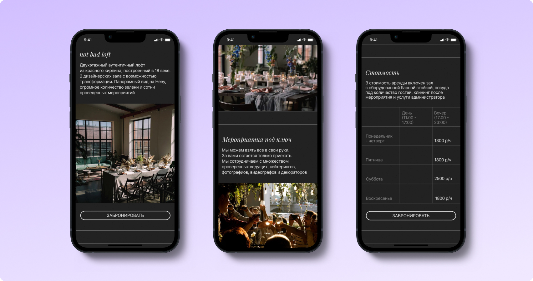 Лофт-пространство Not Bad в Санкт-Петербурге обладает уникальным дизайном и атмосферой, которые наша команда отразила в дизайне одностраничного сайта. Пользователь моментально получает приятный эстетический опыт и желание побыть в уникальной атмосфере.